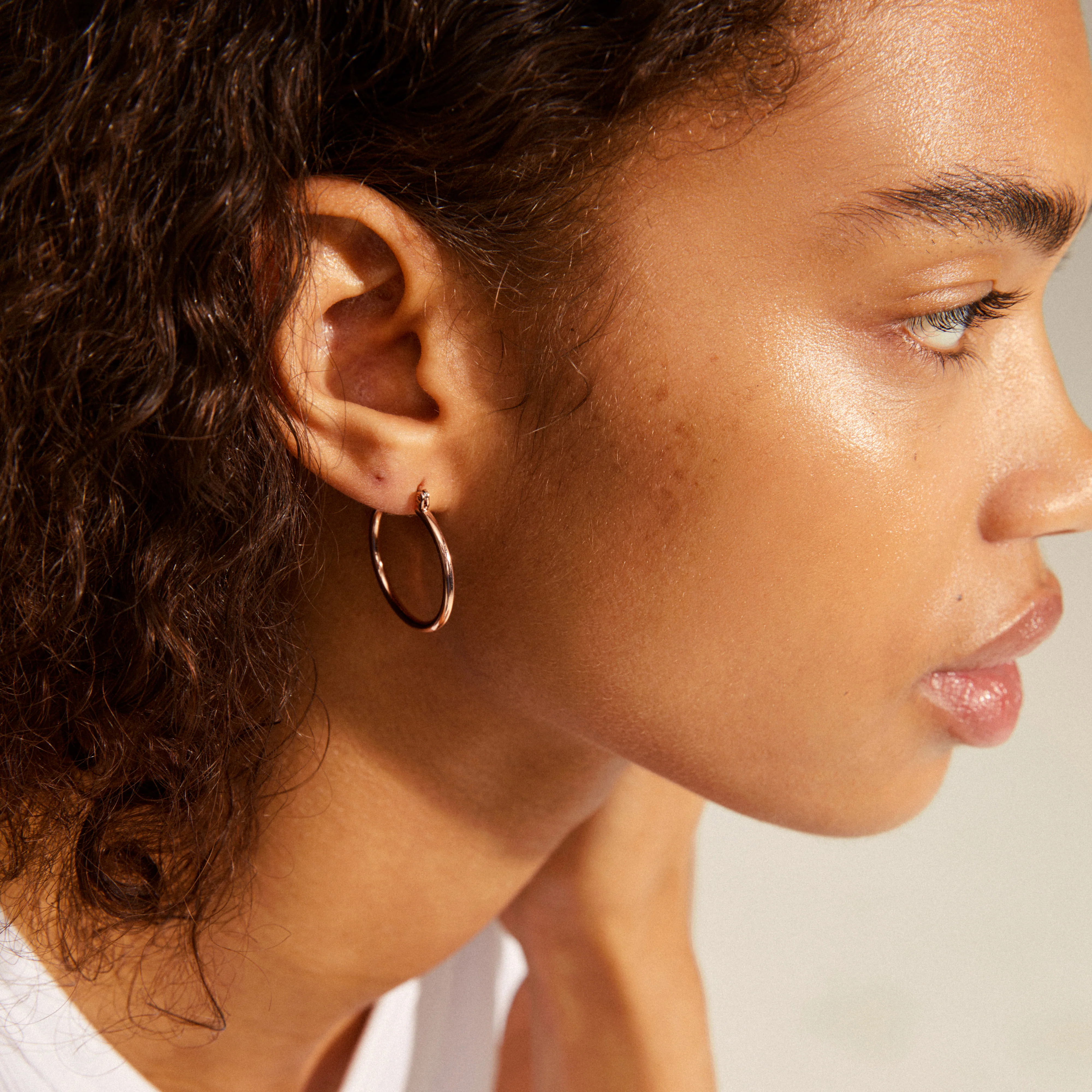 Rosegold-plated classic creoles with user-friendly click clasp. A set of simple, medium-sized hoops that are a must-have for the jewellery collection and will add an elegant finishing touch to any outfit.